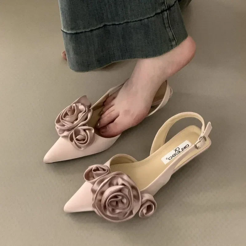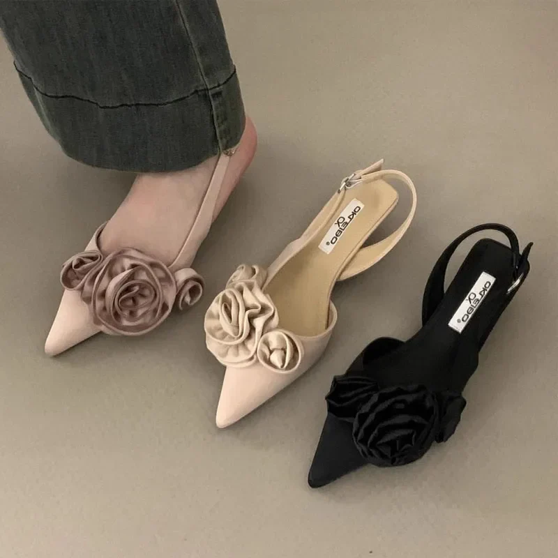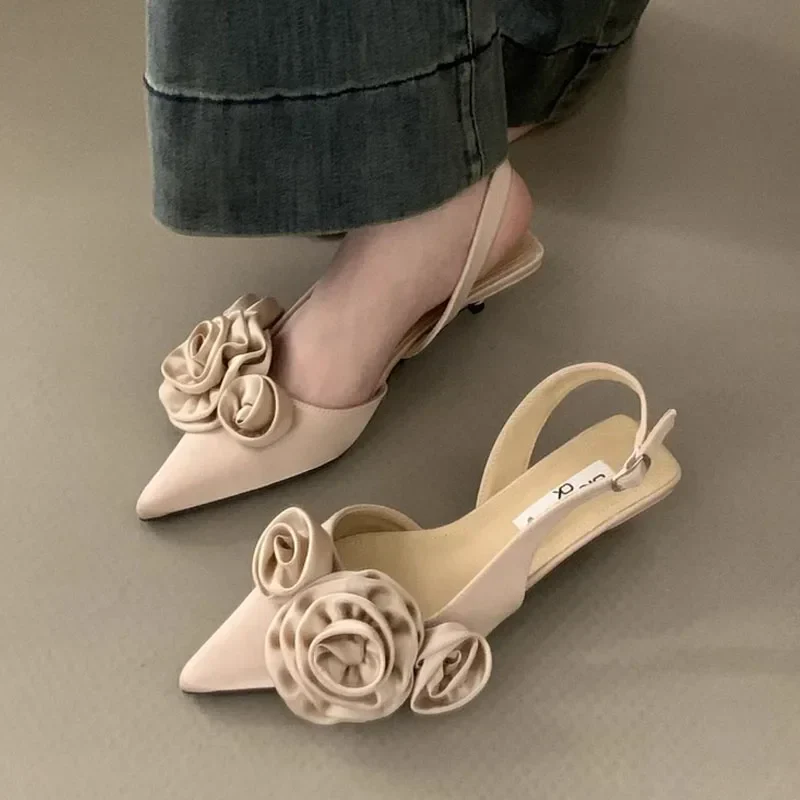 Rose Slingback Closed Toe Heels - Elegant Pointed Sandals