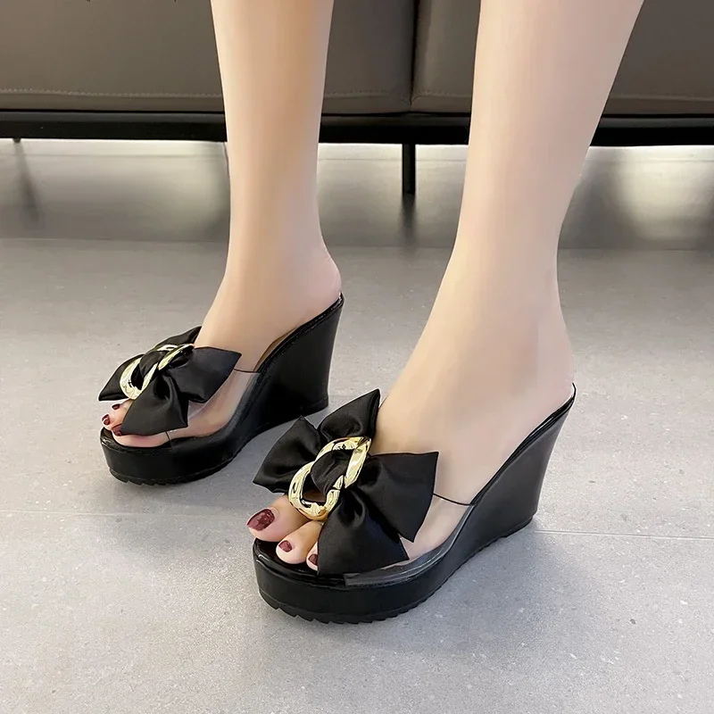 Butterfly Wedge Sandals - Transparent Platform Slides for Women